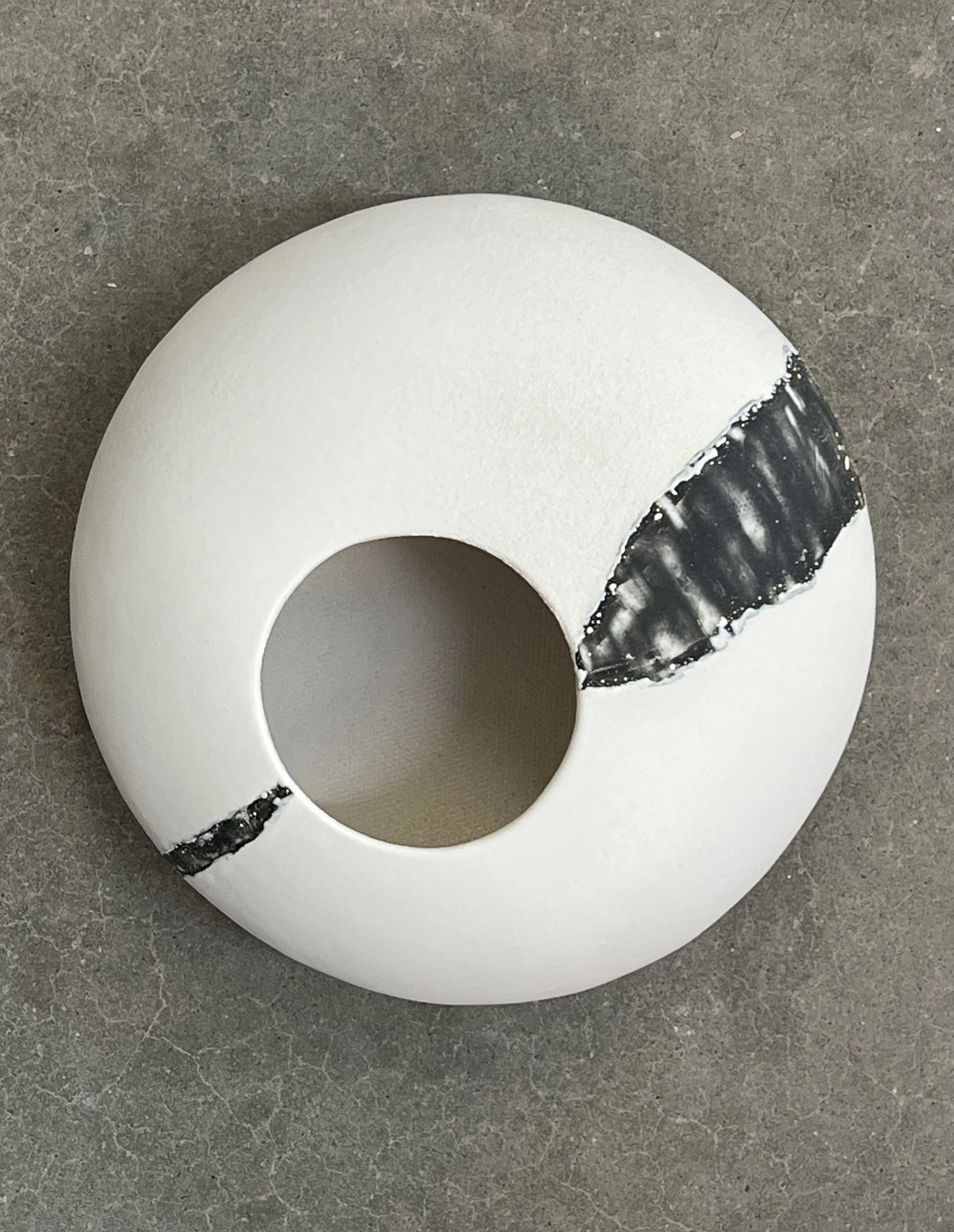 Beth Roland’s artistic journey is deeply intertwined with her experiences as an obstetrician gynecologist. Her three dimensional artworks explore complex issues surrounding women’s bodily autonomy, societal rules, and social inequity. Inspired by the beautiful and intricate design of the female reproductive system, her forms often reference the shape of the uterus. In her work the uterus become a metaphor exploring the shifting duality of both power and vulnerability, as well as the everyday and the divine.